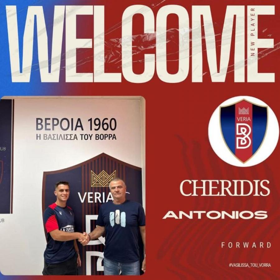 Η ΒΕΡΟΙΑ έκανε δικό της τον ταλαντούχο επιθετικό Αντώνιο Χερίδη Ο 21 χρόνος Σέντερ φορ ξεκίνησε από τα τμήματα υποδομής του ΠΑΟΚ Κουλούρας, τμήματα υποδομής Βέροιας (Κ19), Μακεδονικού Κ19 και στην συνέχεια υπέγραψε επαγγελματικό συμβόλαιο με τον Μακεδονικό (24 συμμετοχές και 3 γκολ ).