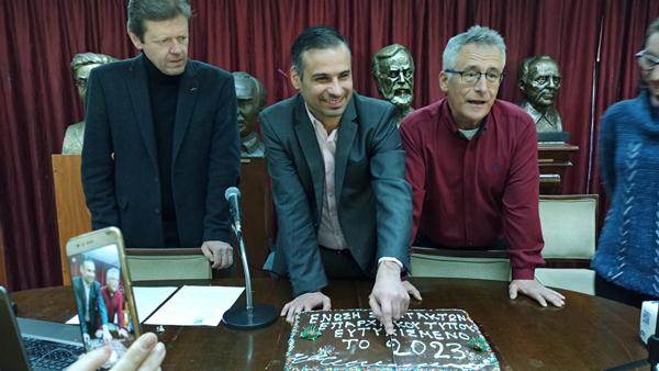 Μετά την ομόφωνη έγκριση του απολογισμού του 2022 και του προγραμματισμού για το 2023 μέσα σε ζεστό και ευχάριστο κλίμα έγινε η κοπή της βασιλόπιτας με ανταλλαγές ευχών μεταξύ των μελών. Φέτος το φλουρί και το δώρο της Ε.Σ.Ε.Τ. κέρδισε η τυχερή Αναστασία Πουλοπούλου.