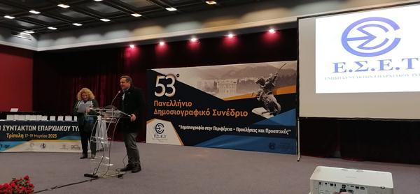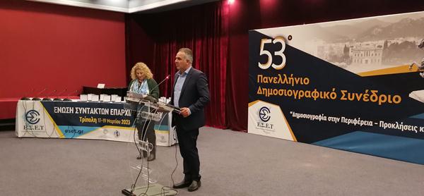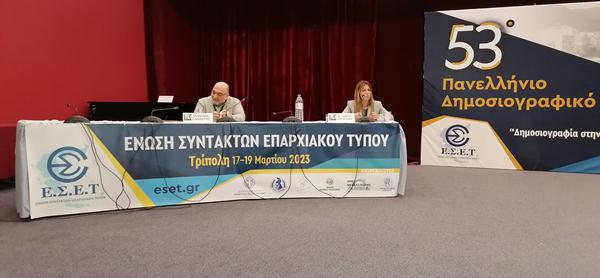Στο 53ο Πανελλήνιο Δημοσιογραφικό Συνέδριο της Ένωσης Συντακτών Επαρχιακού Τύπου στην Αρκαδία, εκφράστηκε με επιτυχία η δυναμική της δημοσιογραφίας στην ελληνική περιφέρεια, ενώ προβλήθηκαν και αναδείχτηκαν τα προβλήματα, αλλά και οι προοπτικές της.
