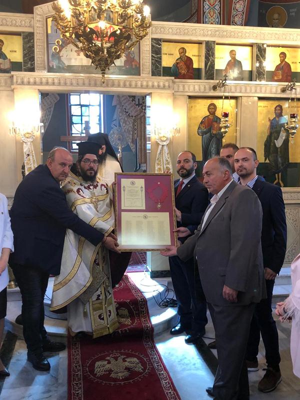 Με απόφαση του Διοικητικού Συμβουλίου απονεμήθηκε η ανώτατη τιμητική διάκριση του Σωματείου, ο Χρυσός Σταυρός του Αγίου Γεωργίου του Τροπαιοφόρου, στους κατοίκους του Ροδοχωρίουμε αφορμή τη συμπλήρωση των εκατό χρόνων από την ίδρυση του χωριού, οι οποίοι υπήρξαν και οι δωρητές της έκτασης για την ανιστόρηση της Ιεράς Μονής. Την ανώτατη τιμητική διάκριση παρέλαβαν εκ μέρους του συνόλου του χωριού και στο όνομα των εκατό σαράντα τριών δωρητών οι εκπρόσωποι των εκκλησιαστικών, πολιτικών, κοινοτικών και εκπαιδευτικών φορέων.Ακολούθησε η περιφορά της θαυματουργού εικόνος του Αγίου Γεωργίου και στο τέλος η απόλυση της Πανηγυρικής Θείας Λειτουργίας.