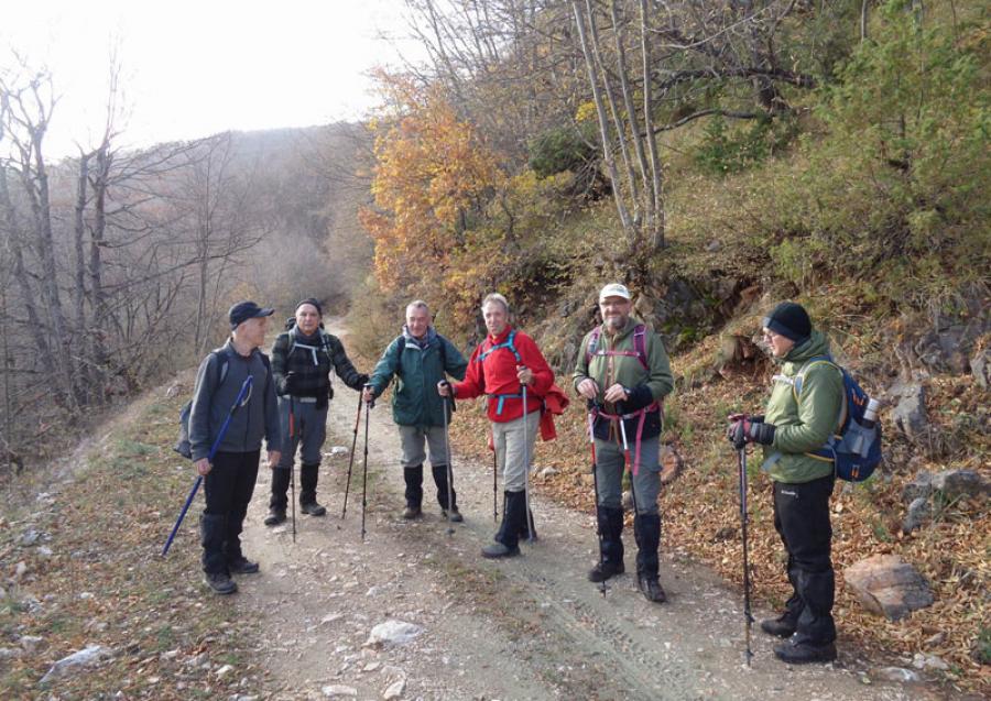Οδοιπορούμε τώρα σε δασικό δρόμο η πεζοπορία γίνεται ξεκούραστα, μας δίνει δυνάμεις για τη συνέχεια.