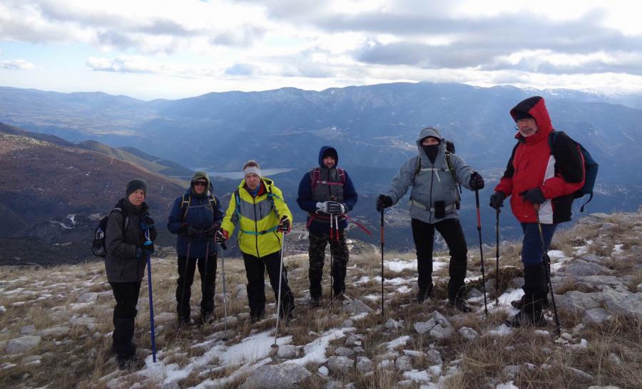 Τα σπουργίτια και οι σπίνοι και τόσα άλλα πουλιά μας συντροφεύουν με το γλυκό τραγούδι τους. Η γυμνή βουνοκορφή μας καλεί να τη διαβούμε και να τη γνωρίσουμε. Μπροστά μας απλώνεται χιονισμένη πλαγιά.