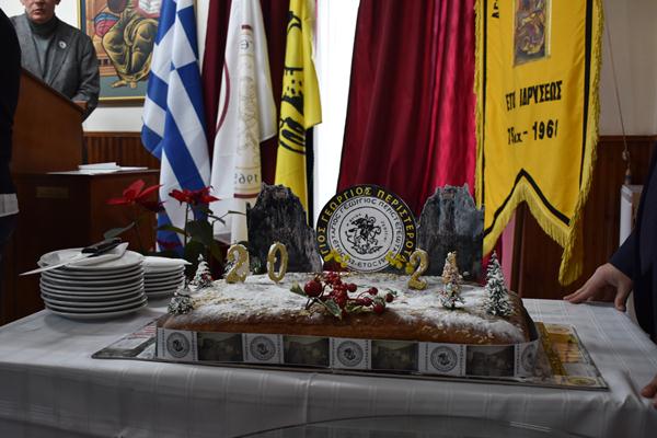 Μετά από το καλωσόρισμα των επισήμων παρόντων και των μελών του Σωματείου από τον Γενικό Γραμματέα κο Ιορδανίδη Αριστείδη ο εκπρόσωπος της Ιεράς Μητρόπολης Θεσσαλονίκης, π.αρχιμανδρίτης και προϊστάμενος του Ιερού Ναού Αγίων Δώδεκα Αποστόλων κος Σπυρίδης Θεολόγος ευλόγησε την κοπή της πίτας. Στη συνέχεια ο πρόεδρος κος Κυριακίδης Θεοδόσιος έκοψε και μοίρασε τα κομμάτια σε επισήμους και σωματεία.