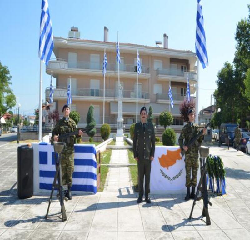 Η εκδήλωσή μας αυτή αποκτά επιπλέον μια ιδιαίτερη και ξεχωριστή σημασία για τον τόπο μας γιατί αποτελεί την αφορμή για την καταγραφή ιστορικών γεγονότων που σχετίζονται με συμπολίτες και συντοπίτες μας που αγωνίστηκαν για την υπεράσπιση και την ακεραιότητα της Κύπρου, όπως είναι ο συμπολίτης μας Έφεδρος Λοχίας Ηλίας Ηλιάδης που κατέθεσε σήμερα στεφάνι στο Ηρώο, όπως κι αείμνηστος Λοχίας Παναγιώτης Τουμανίδης. Τα γεγονότα αυτά ο Δήμος μας σκοπεύει να τ΄αναδείξει και να τα προβάλει, όπως επίσης και να ενδυναμώσει τις σχέσεις του με το Σύλλογο Κυπρίων Ν. Πέλλας και γενικότερα με τη Μεγαλόνησο.