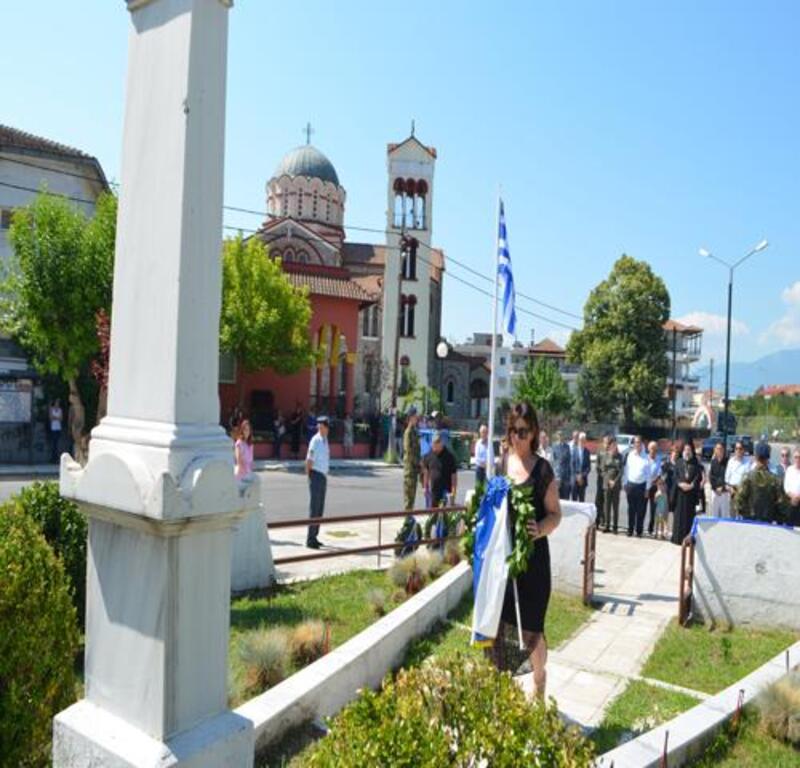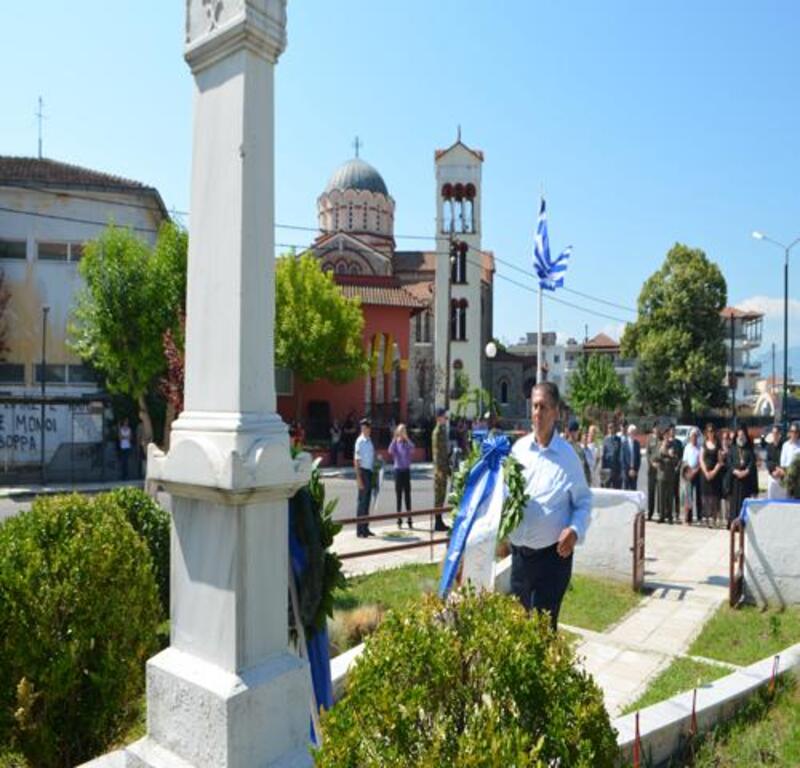 Στη συνέχεια στο Ηρώο της πόλης με την παρουσία τιμητικής Φρουράς του Στρατού μας τελέστηκε επιμνημόσυνη δέηση και κατατέθηκαν στεφάνια από: