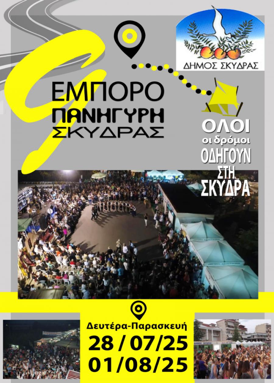 Ο φιλόξενος Δήμος μας κι όλοι οι συντελεστές της 9ης Εμποροπανήγυρης Σκύδρας 2025 σας περιμένουμε και φέτος για να ζήσουμε και ν΄απολαύσουμε, όπως πάντα όλοι μαζί, μια νέα ξεχωριστή εμπειρία!!