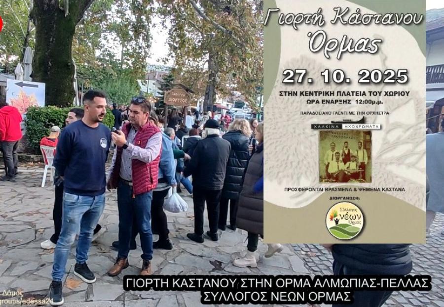 Η Γιορτή Κάστανου την Δευτέρα 27-10-2025 έγινε για 18η χρονιά χάρη στην άψογη διοργάνωση του Δ.Σ. και των μελών του Συλλόγου Νέων Όρμας με την βοήθεια του Συλλόγου Γυναικών Όρμας και της Τοπικής Αυτοδιοίκησης τα έδωσαν όλα για να στηθεί αυτή η γιορτή γεμάτη γεύσεις, μουσικές και χαμόγελα!