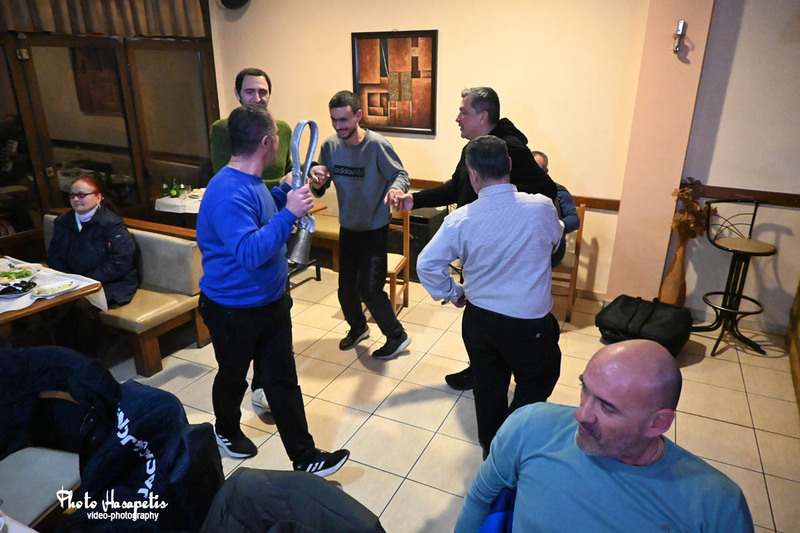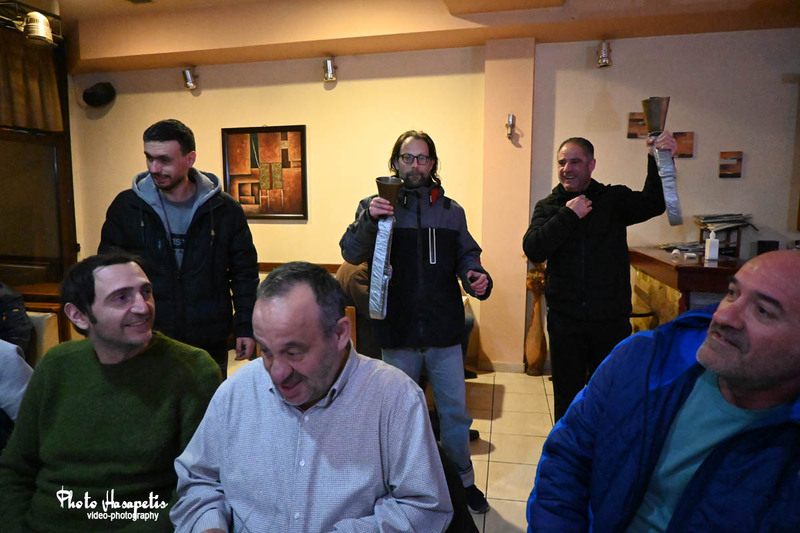 Η βραδιά κύλησε σε ιδιαίτερα ευχάριστο κλίμα, με την επιμέλεια του Βαγγέλη Μπουσμαλή, ο οποίος φρόντισε ώστε το κέφι να παραμείνει αμείωτο. Πρωταγωνιστικό ρόλο είχαν, όπως επιβάλλει το έθιμο, τα πειρακτικά τραγούδια, που με χιούμορ και καλή διάθεση σκόρπισαν γέλια και ενίσχυσαν το αποκριάτικο πνεύμα των ημερών.