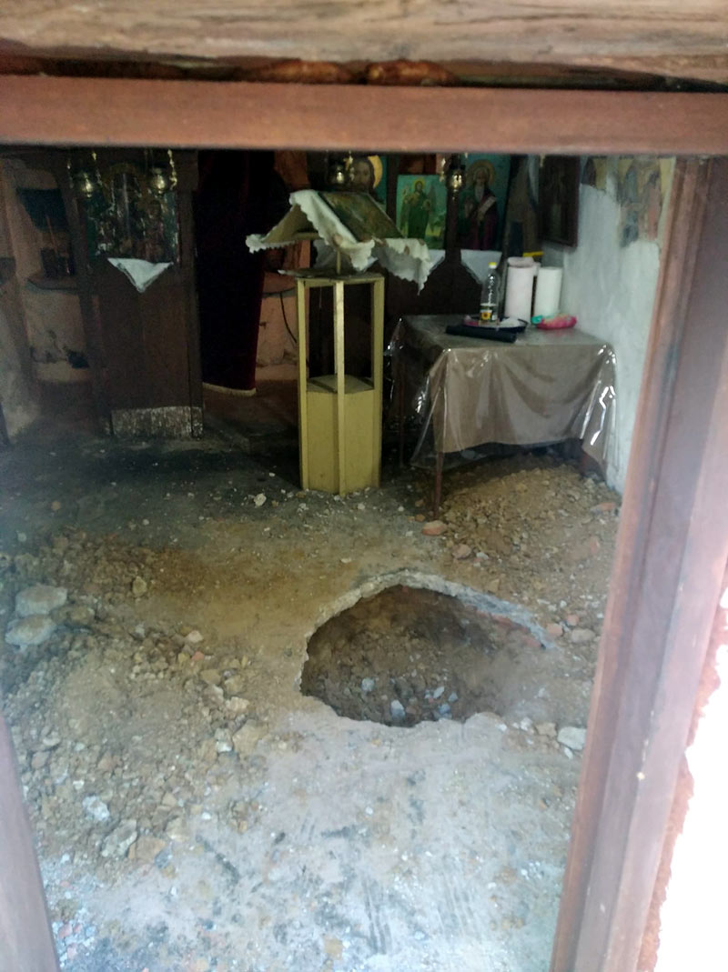 Μία δυσάρεστη έκπληξη περίμενε σήμερα το πρωί στους κατοίκους της Χαράδρας Βέροιας, όταν αντίκρισαν σκαμμένο το δάπεδο εντός του Ιερού ναΐσκου του Προφήτη Ηλία.