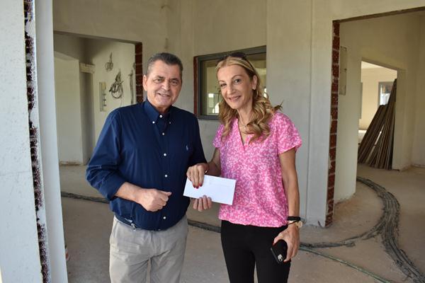 Επισκέφτηκε σήμερα το νέο μας Κ.Δ.Η.Φ. ΑμεΑ στην Πατρίδα συνοδευόμενος από την κυρία Νίκη Καρατζιούλα, ειδική σύμβουλο της Π.Ε. Ημαθίας, όχι απλά να ενημερωθεί για το έργο αλλά και να δείξει έμπρακτα το ενδιαφέρον του προσφέροντας. Η πρόεδρος του Συλλόγου μας, κυρία Νόρα Σαρκατζή τους υποδέχτηκε και μαζί με τον μηχανικό του έργου κύριο Αντώνη Πιστοφίδη τους πληροφόρησαν, τόσο για τις τελευταίες κατασκευαστικές εξελίξεις, όσο και για την σπουδαιότητα ενός τέτοιου έργου.