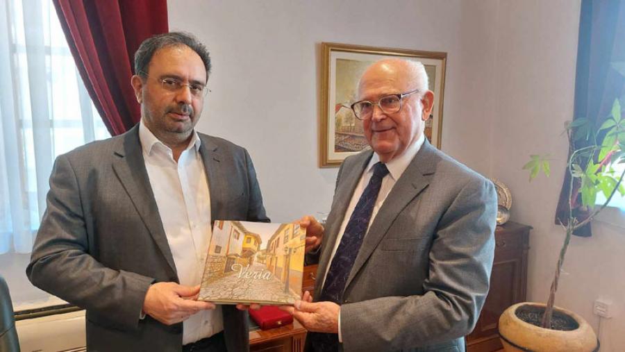 Ο Δήμαρχος Βέροιας καλωσόρισε τον Πρέσβη στο ιστορικό κτίριο του Δημαρχείου σημειώνοντας τις διαχρονικές σχέσεις που υπάρχουν ανάμεσα σε Ελλάδα και Κούβα στα πεδία της ιστορίας και του πολιτισμού, παρουσιάζοντας τα στοιχεία που συνθέτουν την εικόνα της Βέροιας σχετικά με τον αρχαιολογικό της πλούτο, τη θρησκευτική της παράδοση και την εξέλιξη της γαστρονομία της.