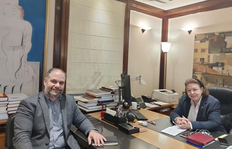 Η κοινή επιθυμία για ανάδειξη του Γυμνασίου της Μίεζας, η οποία θα υλοποιηθεί με την υπογραφή Προγραμματικής σύμβασης μεταξύ του Υπουργείου Πολιτισμού και του Δήμου Νάουσας στο προσεχές διάστημα, ήταν η σημαντικότερη είδηση που προέκυψε κατά τη διάρκεια της συνάντησης του δημάρχου του Δήμου Ηρωικής Πόλεως Νάουσας κ. Νίκου Κουτσογιάννη με την Υπουργό Πολιτισμού κα Λίνα Μενδώνη.