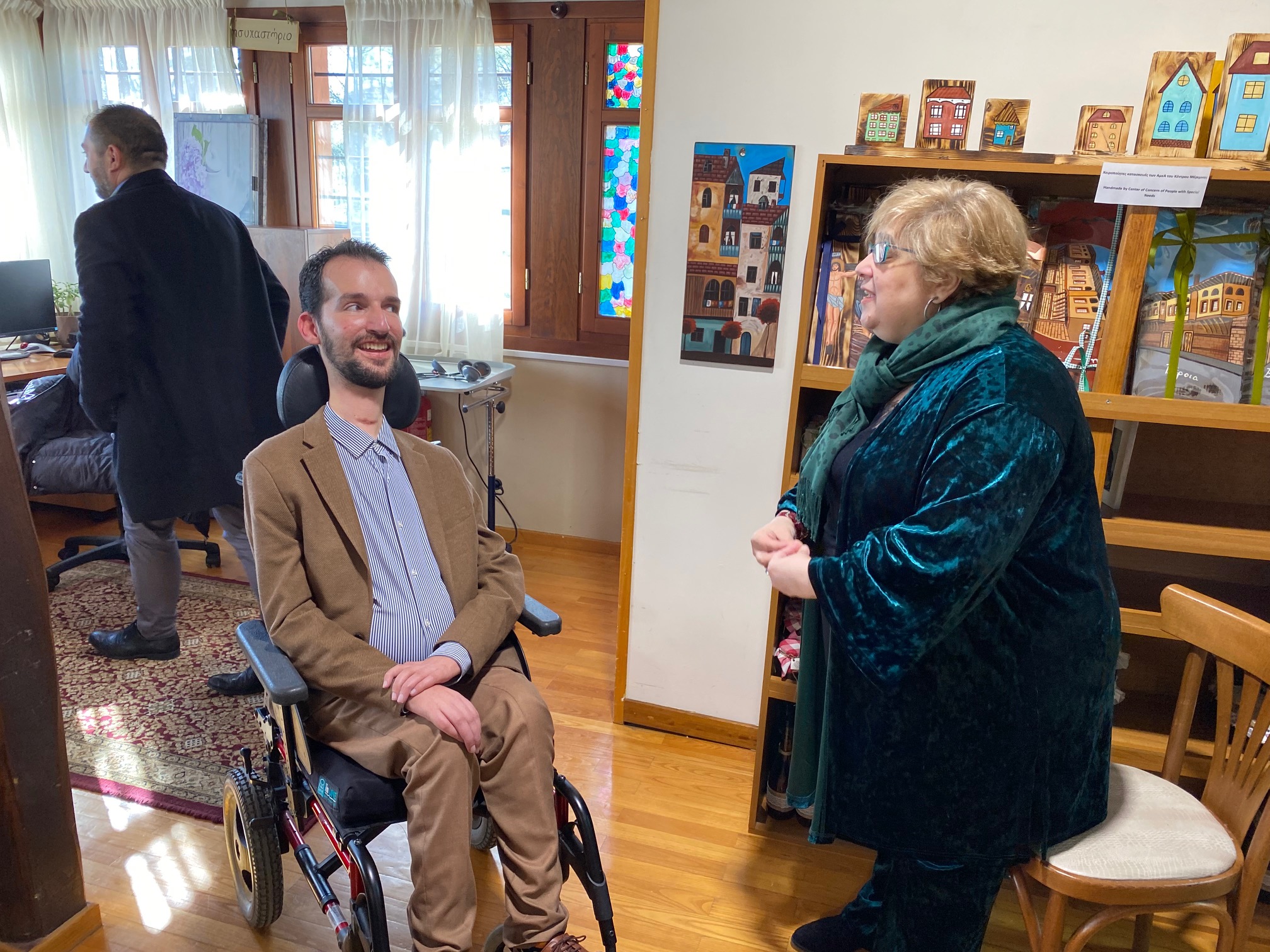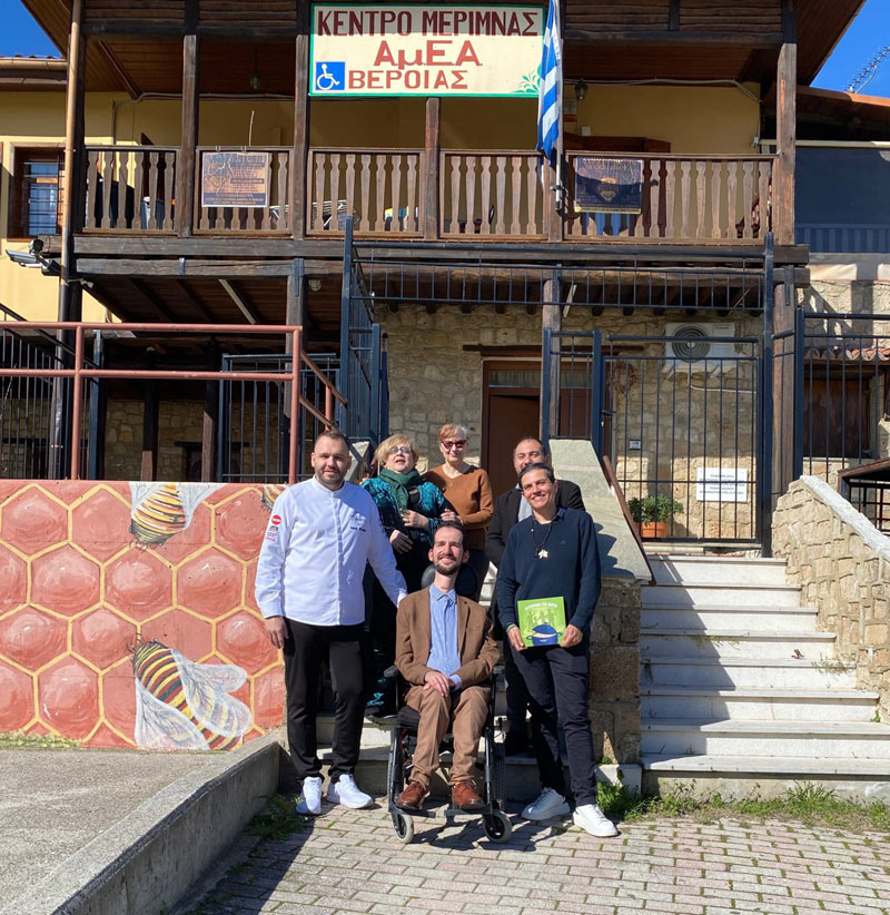 Πρώτος σταθμός του Στέλιου Κυμπουρόπουλου ήταν το ΚΕΜΑΕΔ (Κέντρο Μέριμνας με Ειδικές Δεξιότητες) Δήμου Βέροιας όπου παρουσία παιδιών και εθελοντών και εθελοντριών, άκουσε από την Διευθύντρια της δομής Μελίνα Δαμιανίδου το έργο που συντελείται και εντυπωσιάστηκε από τα εργαστηριακά δημιουργήματα των παιδιών, στην ζωγραφική, την χειροτεχνία και την μαγειρική.