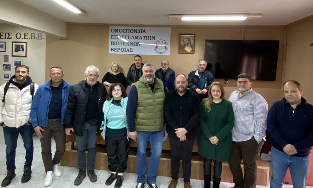 Το κλιμάκιο συναντήθηκε στις 11:00, στα γραφεία της Ομοσπονδίας Επαγγελματιών Βιοτεχνών Βέροιας (Ο.Ε.Β.Β.), με φορείς της πόλης μας και κατά τη συζήτηση συμφωνήθηκε πως η ακρίβεια είναι ένα θέμα που απασχολεί όλους τους κλάδους της χώρας και πρέπει να αντιμετωπιστεί με ουσιαστικά μέτρα και όχι με ημίμετρα και οικονομικά πακέτα παροχών.
