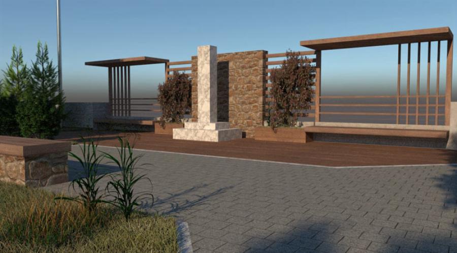 Επίσης στην κεντρική είσοδο της πλατείας θα κατασκευαστεί τοιχίο από μπετόν το οποίο θα στεγαστεί δημιουργώντας μια είσοδο στο χώρο της πλατείας.
