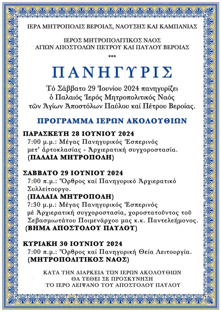 Πανηγυρίζει ο Μητροπολιτικός Ναός της Βέροιας