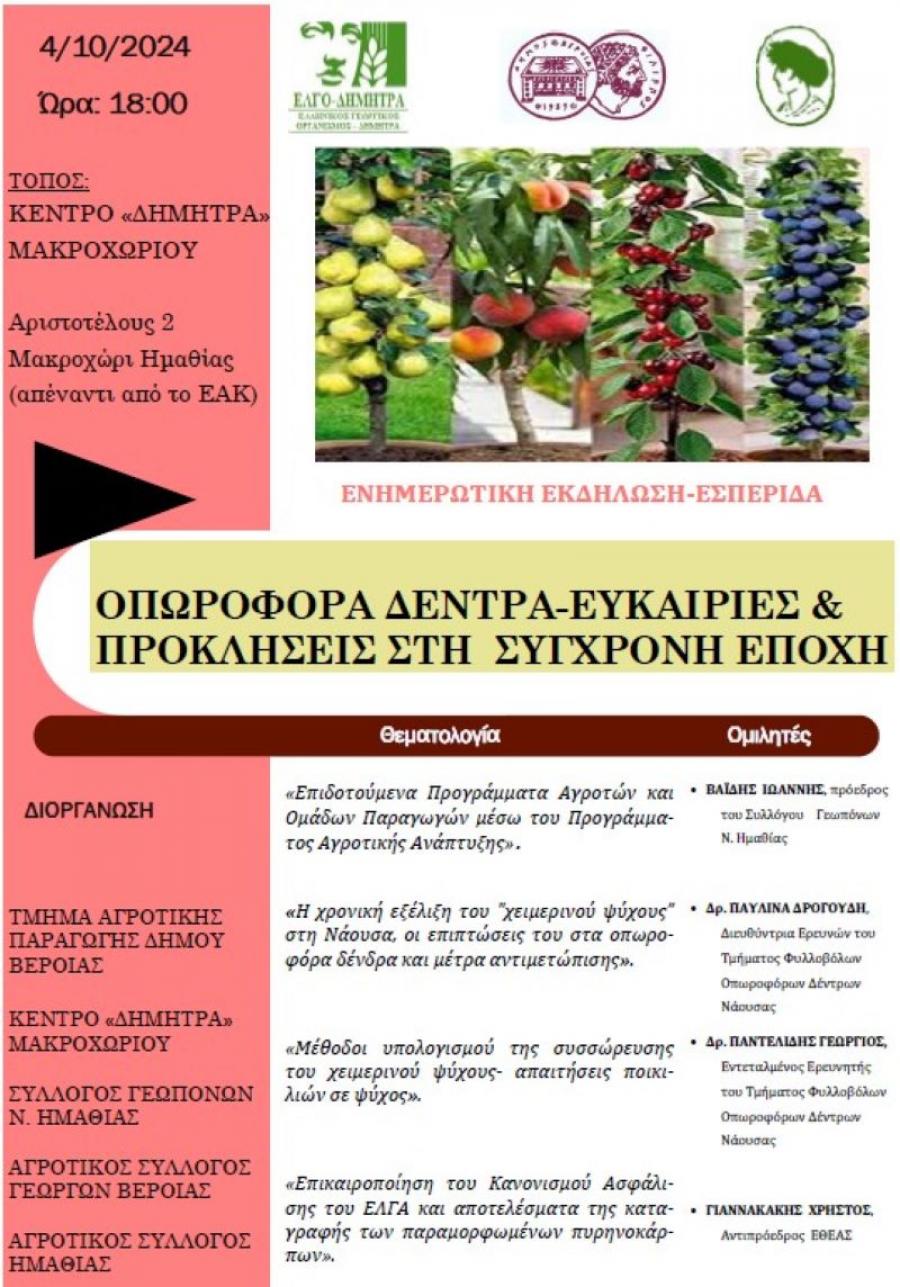 Ημερίδα στο Μακροχώρι για τα οπωροφόρα δένδρα-ευκαιρίες και προκλήσεις στην σύγχρονη εποχή