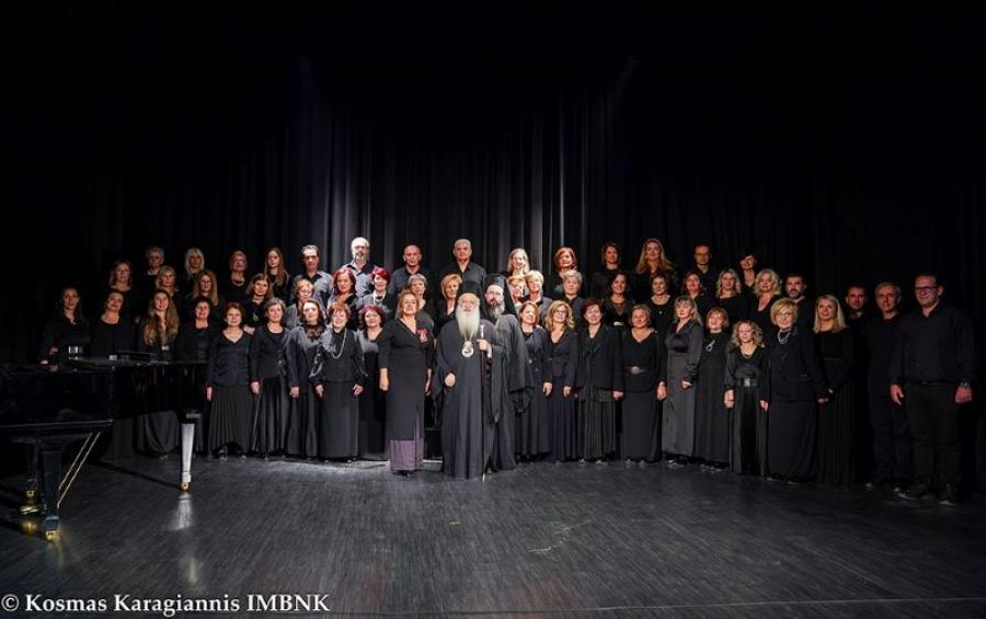 Στο δεύτερο μέρος η Σχολική Χορωδία Βεροίας και η Χορωδία του Πολιτιστικού Συλλόγου «Αιγές» Βεργίνας υπό τη διεύθυνση της μουσικού κ. Ελένης Αναγνώστου παρουσίασαν ύμνους του οσίου Γερασίμου του Υμνογράφου σε μουσική Μάριου Τόκα και επίκαιρα τραγούδια για τα πρόσφατα Ελευθέρια της Ναούσης.