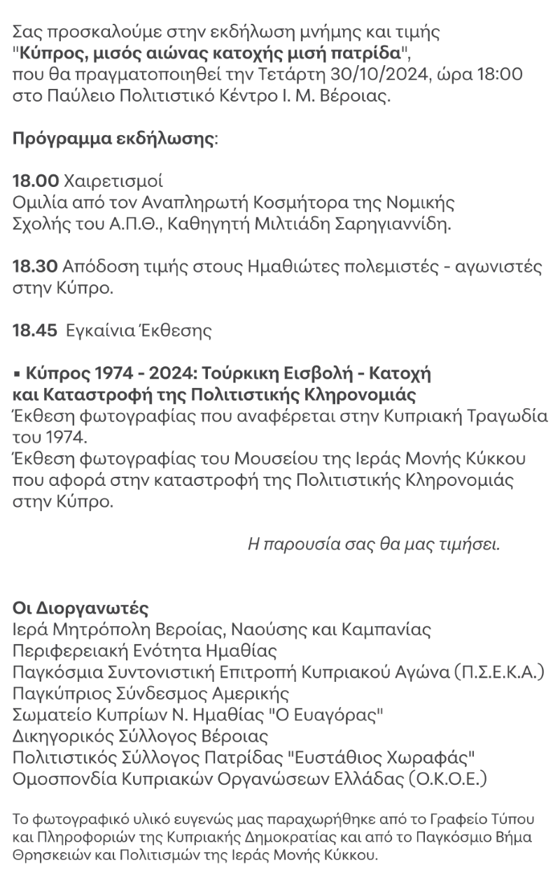 Έκθεση φωτογραφίας στη Βέροια για τα 50 χρόνια κατοχής της Κύπρου