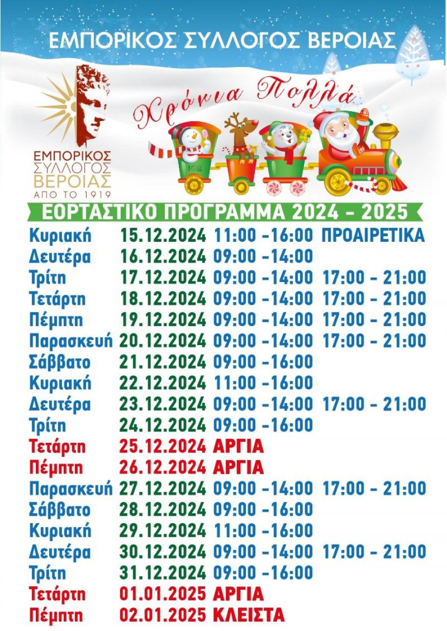 Το εορταστικό πρόγραμμα των εμπορικών καταστημάτων της Βέροιας