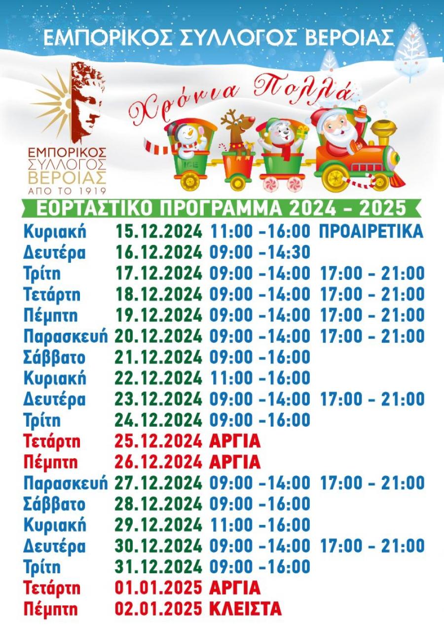 Πότε θα είναι ανοιχτά τα καταστήματα της Βέροιας τα Χριστούγεννα και την Πρωτοχρονιά