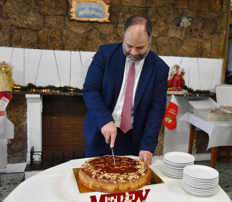 Το πρωί τελέστηκε δοξολογία στον Ιερό Ναό της Μεταμόρφωσης του Σωτήρος και στη συνέχεια πραγματοποιήθηκε η καθιερωμένη κοπή βασιλόπιτας του Δήμου, στη Λέσχη Αξιωματικών, παρουσία του προέδρου του Επιμελητηρίου Ημαθίας κ. Γεωργίου Μπίκα, του Δημάρχου Νάουσας κ. Νίκου Κουτσογιάννη, του προέδρου του Δημοτικού Συμβουλίου κ. Ανδρέα Αϊδίνη, των Αντιδημάρχων κας Άννας Ασλανίδου, κας Άννας Βασιλειάδου, κας Βίκυς Δανιηλίδου, κ. Στέλιου Δάγγα, κ. Θεόδωρου Δολδούρη και κ. Γρηγόρη Σαμαρά, δημοτικών συμβούλων, τοπικών προέδρων και συμβούλων, εκπροσώπων φορέων του Δήμου και πολιτών.