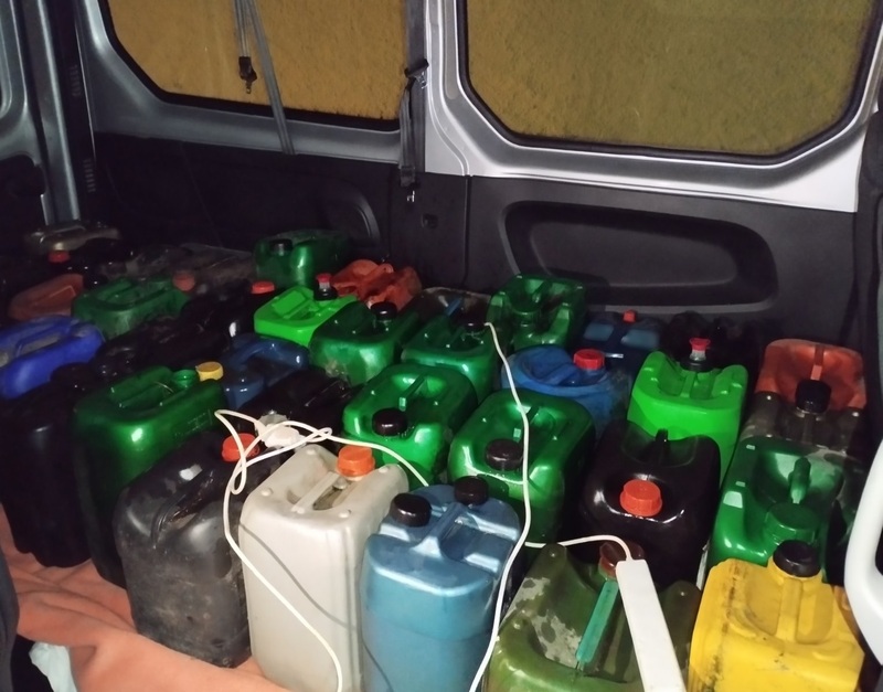Στο όχημα εντοπίστηκαν 24 πλαστικά δοχεία των 20 λίτρων το καθένα, που περιείχαν συνολικά 480 λίτρα πετρελαίου θέρμανσης και 17 κενά πλαστικά δοχεία.