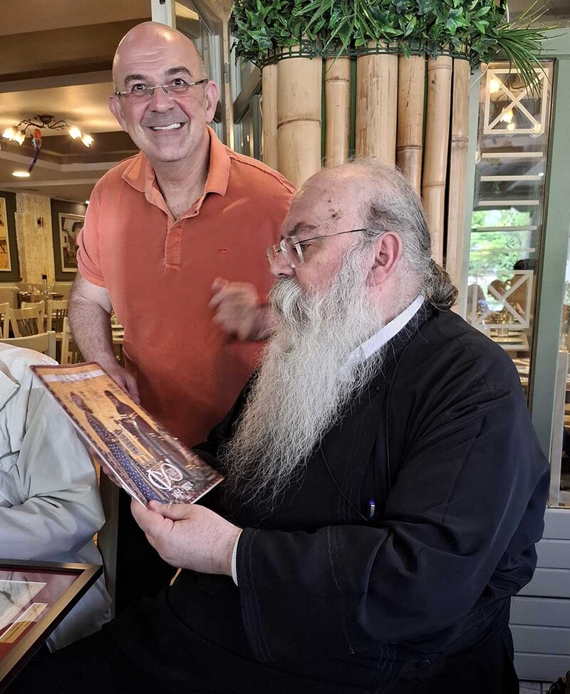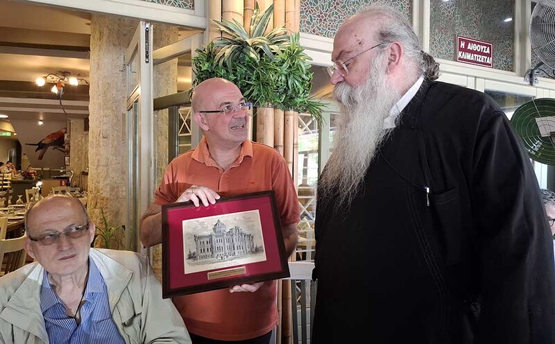 Έπειτα, στην ΠΜΓΣ παρατέθηκε γεύμα από τη Μητρόπολη Βεροίας, Ναούσης και Καμπανίας σε εστιατόριο της πόλης, όπου ο εκπρόσωπος του Μητροπολίτη, Πρωτοσύγκελος, Αρχιμανδρίτης κ. Αθηναγόρας Μπίρδας δεξιώθηκε τους μαθητές, τους εκπαιδευτικούς και τους γονείς με ένα πλουσιοπάροχο γεύμα και με πολλή αγάπη. Έγιναν ενδιαφέρουσες και ουσιαστικές συζητήσεις κατά το γεύμα ανάμεσα στον κ. Αθηναγόρα και τους εκπαιδευτικούς της Σχολής και ανταλλάχθηκαν αναμνηστικά δώρα ανάμεσα στην ΠΜΓΣ και τη Μητρόπολη. Αμέσως μετά, σύσσωμο το σχολείο περιηγήθηκε στα σημαντικότερα τοπόσημα της πόλης. Ελιά, οδός Κεντρικής, παλιά Μητρόπολη, εβραϊκή συνοικία της Μπαρμπούτας ήταν οι στάσεις της περιήγησης με κατάληξη το βήμα του Αποστόλου Παύλου, όπου έγινε εμφανής η άμεση σύνδεση του τόπου με την πορεία του Αποστόλου των Εθνών.
