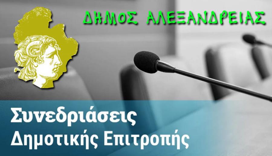 Τακτική συνεδρίαση της Δημοτικής Επιτροπής Αλεξάνδρειας θα διεξαχθεί στο Δημοτικό Κατάστημα δια ζώσης, την 17η Ιουνίου 2025 ημέρα Τρίτη και ώρα 13:00, για συζήτηση και λήψη απόφασης στα παρακάτω θέματα της ημερήσιας διάταξης: