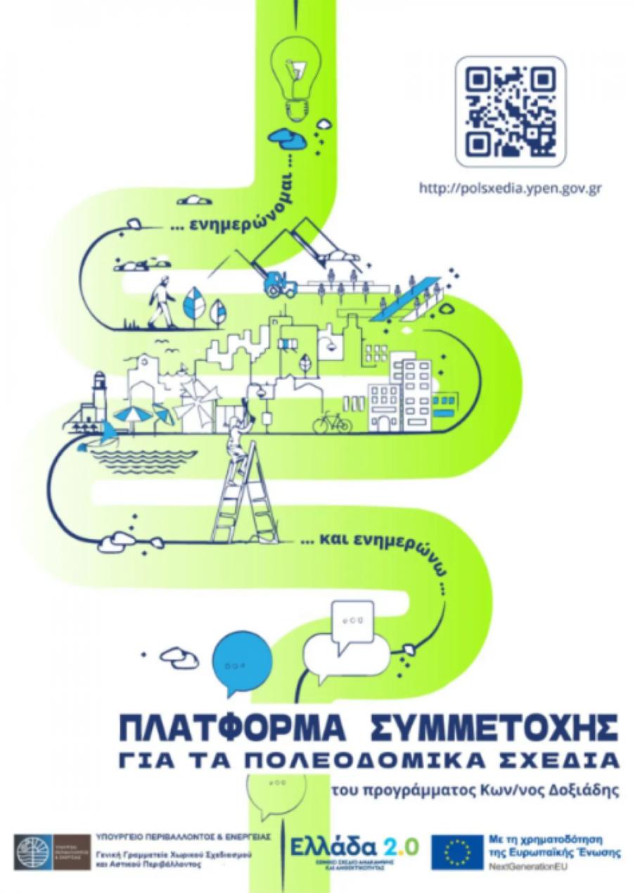 Σε αυτό το πλαίσιο, πέρα από τη καταγραφή σχολίων των παρευρισκόμενων κατά τη διάρκεια της δημόσιας εκδήλωσης, το κοινό μπορεί να υποβάλει τις ιδέες και τις προτάσεις του, αλλά και τα προβλήματα και τις παρατηρήσεις του μέσω της ειδικής πλατφόρμας συμμετοχής του ΥΠΕΝ (https://polsxedia.ypen.gov.gr/) και για πέντε ημέρες μετά την παρουσίαση.