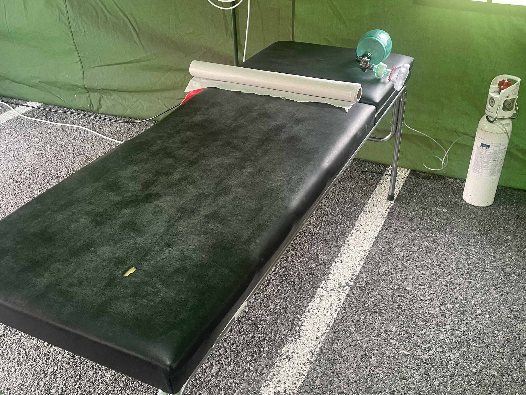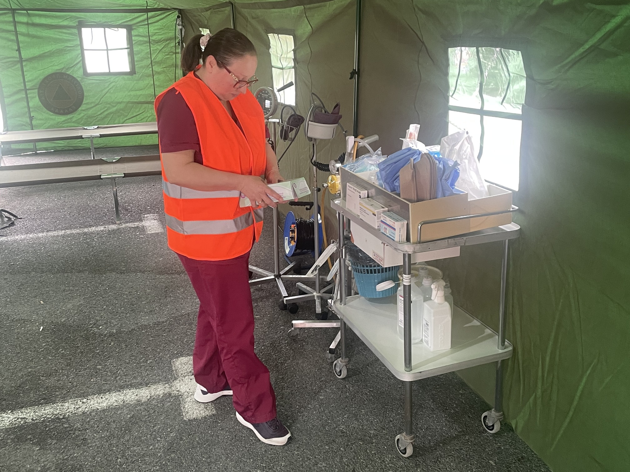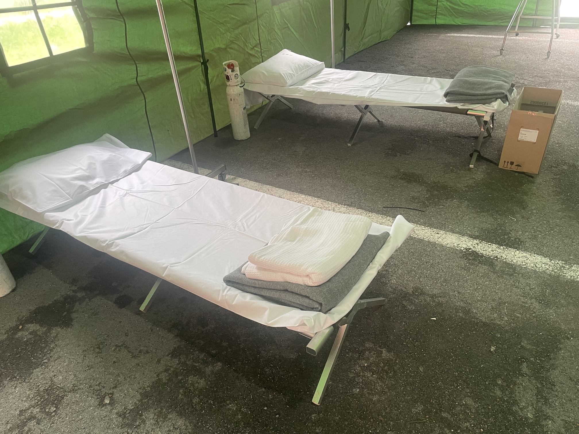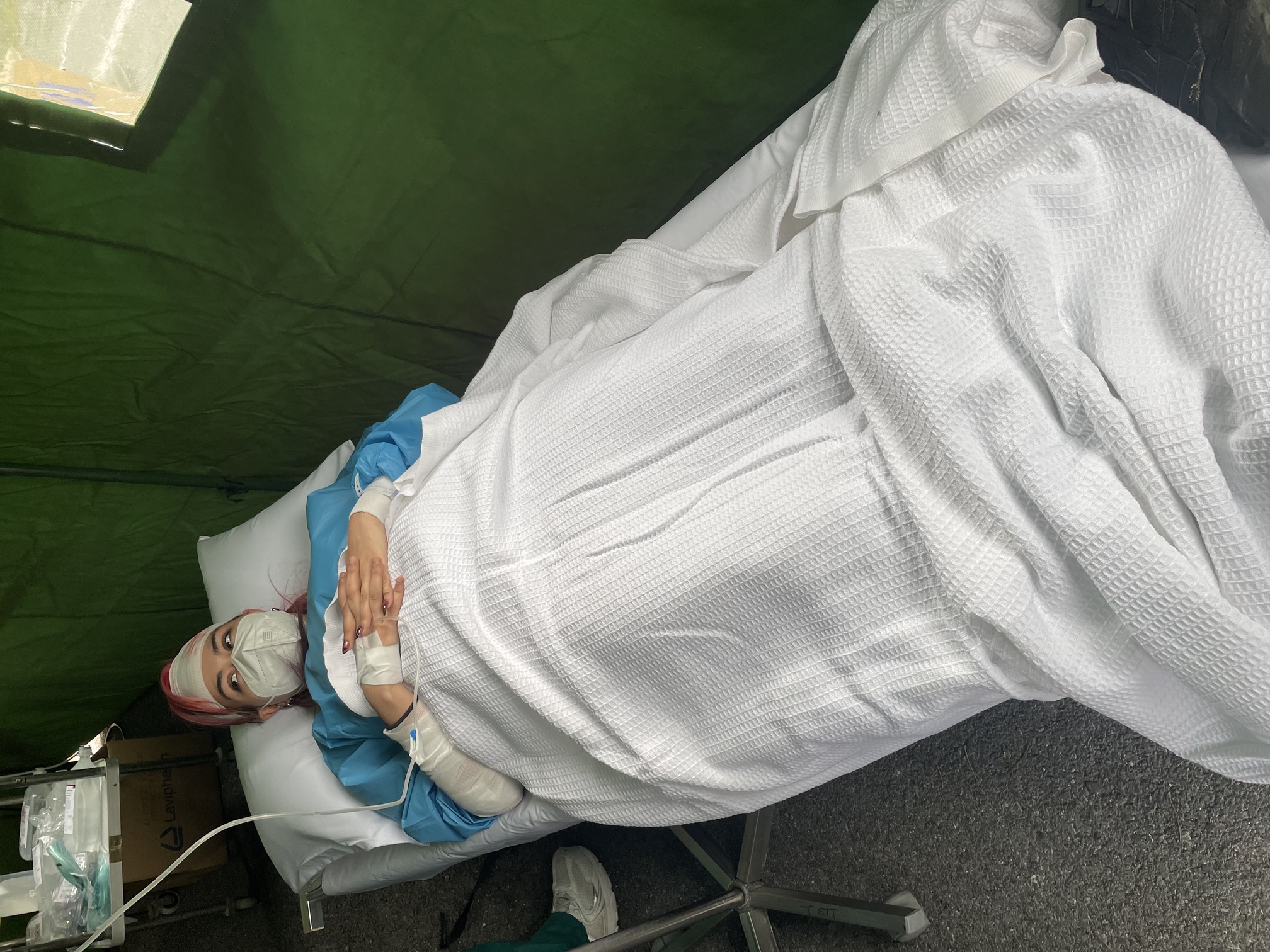 Παράλληλα, στον προαύλιο χώρο του νοσοκομείου αναπτύχθηκε προσωρινός σκηνικός καταυλισμός με μονάδες διαλογής (triage) και νοσηλείας, σύμφωνα με τα διεθνή πρότυπα διαχείρισης μαζικών καταστροφών. Εκεί πραγματοποιήθηκε η υποδοχή και κατηγοριοποίηση των περιστατικών με βάση τη βαρύτητά τους.