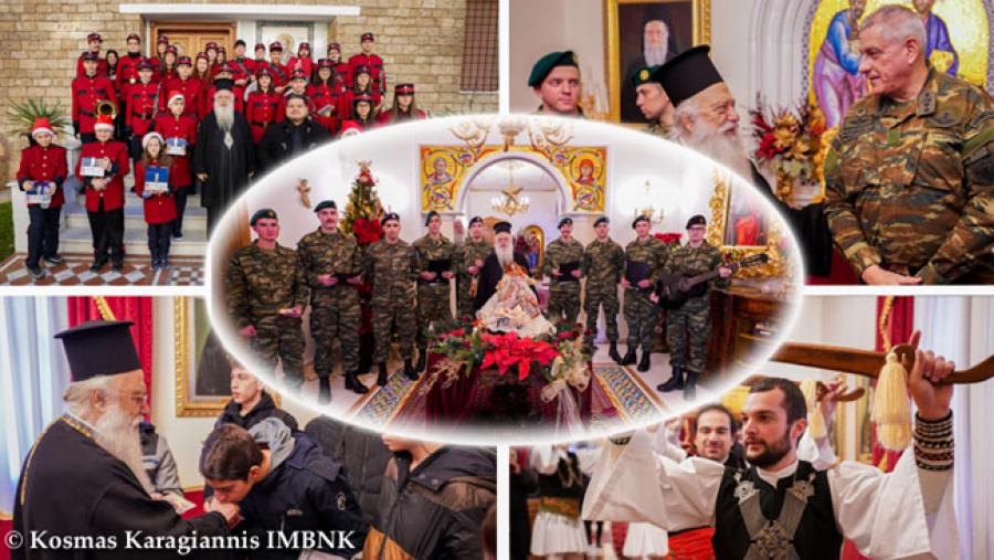 Ο Σεβασμιώτατος Μητροπολίτης μας κ. Παντελεήμων τους υποδέχθηκε όλους με αισθήματα χαράς και ευγνωμοσύνης και ευχήθηκε ο γεννηθείς Κύριος, ο οποίος γίνεται άνθρωπος και έρχεται στη γη για να λυτρώσει τον άνθρωπο από την αμαρτία να φέρει την ειρήνη και την καταλλαγή εκεί όπου επικρατούν οι συγκρούσεις και οι αντιπαραθέσεις, να επέμβει εκεί όπου ο άνθρωπος αδυνατεί να προχωρήσει, να ανοίξει δρόμους εκεί όπου ο άνθρωπος βλέπει μόνο αδιέξοδα και να δώσει λύσεις εκεί όπου η ανθρώπινη λογική παραλύει.