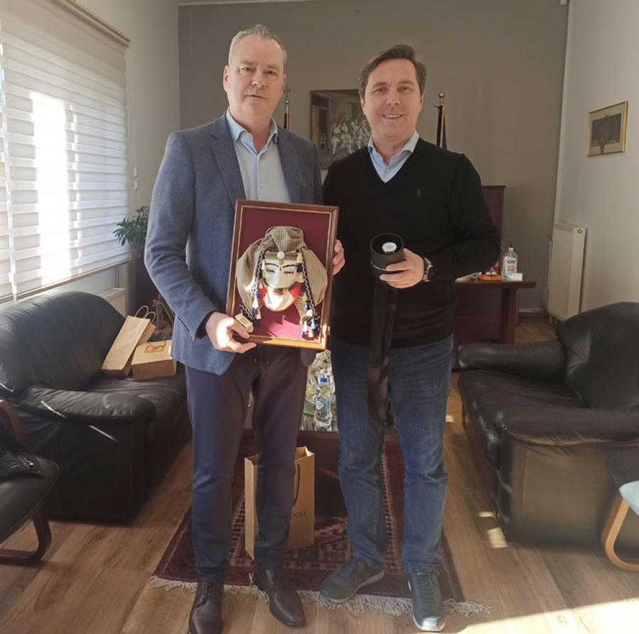Τον Δήμαρχο Κατερίνης Κώστα Κουκοδήμο υποδέχτηκε σήμερα Τρίτη (27.12.2022) στο δημαρχείο ο Δήμαρχος Νάουσας Νικόλας Καρανικόλας, με τον οποίο αντάλλαξαν ευχές και συζήτησαν θέματα χωροταξίας και υποδομών, καθώς ο κ. Κουκοδήμος είναι και Πρόεδρος της Επιτροπής της Κεντρικής Ένωσης Δήμων Ελλάδας (ΚΕΔΕ) για θέματα χωροταξίας, υποδομών και δικτύων.