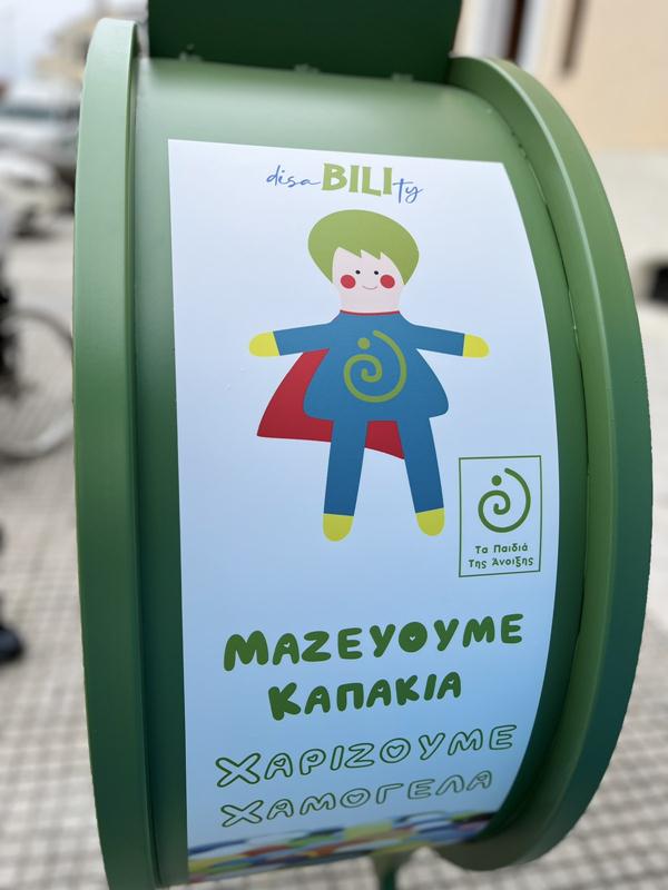Με πρεσβευτή τον Bili μας, ξεκινήσαμε την καμπάνια για την συλλογή πλαστικών καπακιών. Η κοινωνική προσφορά και η προστασία του περιβάλλοντος είναι οι αξίες που πρεσβεύει ο Biliμας στο νέο του εγχείρημα (το όνομα του Biliπροέρχεται από τον διεθνή ορισμό ατόμων με αναπηρίες disability).Σκοπός της δράσης είναι να συγκεντρωθούν όσο το δυνατόν περισσότερα πλαστικά καπάκια και να βοηθηθεί όποιος έχει ανάγκη. Ο σύλλογός μας δέχεται αιτήματα ατόμων με αναπηρίες από οποιοδήποτε σημείο της χώρας για αναπηρικάαμαξίδια ή για οποιοδήποτε άλλο ορθοπεδικό είδος υπάρχει ανάγκη.