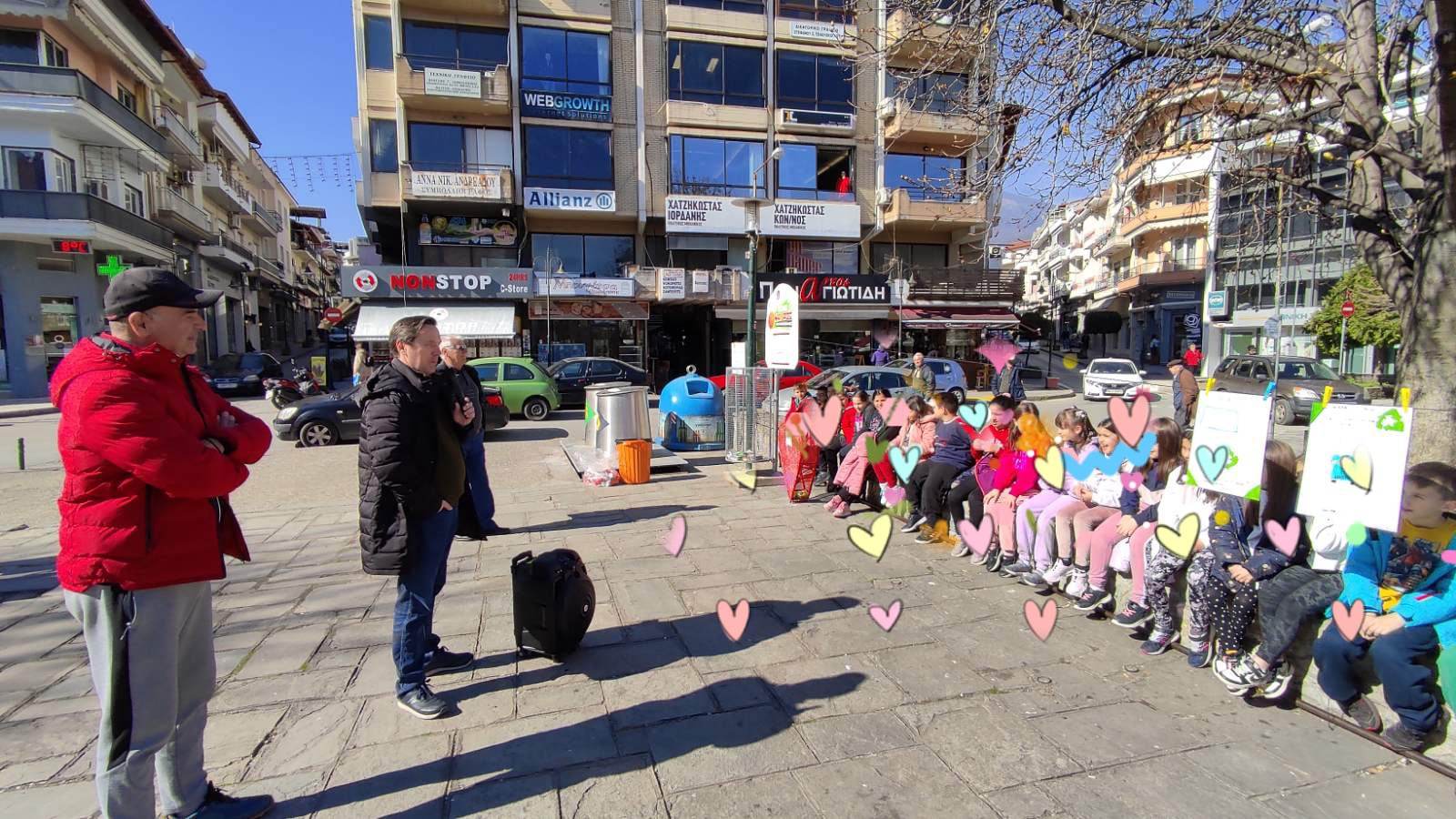 Αρχικά, οι μαθητές με την υποστήριξη της δασκάλας τους Μαρίας Τσιαμούλου, έκαναν ζωγραφιές και έγραψαν μηνύματα με θέμα την προστασία του περιβάλλοντος. Στη συνέχεια στην πλατεία Καρατάσου, όπου έχει τοποθετηθεί πρόσφατα από τον Δήμο Νάουσας ένα καλάθι ανακύκλωσης κουτιών αλουμινίου και μια κατασκευή σε σχήμα καρδιάς για ανακύκλωση πλαστικών καπακιών, τα παιδιά παρουσίασαν τις ζωγραφιές τους.