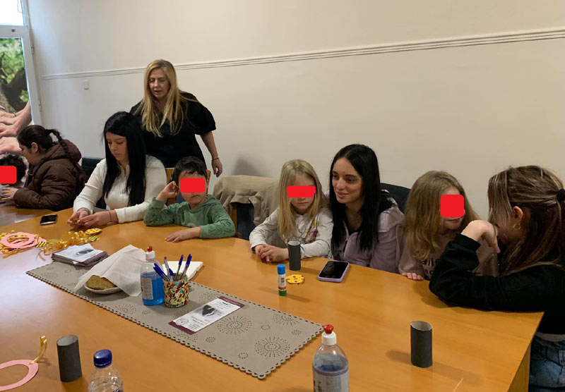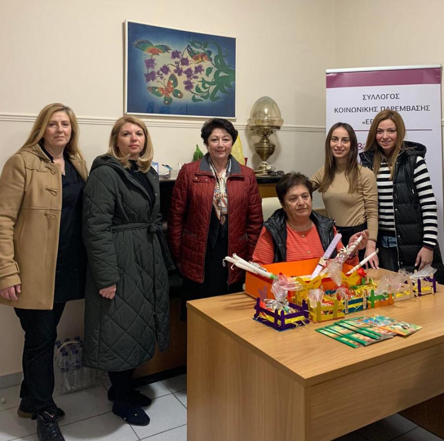 Εκπαιδευτικούς και μαθητές του Τμήματος Βρεφονηπιοκόμων της Δ.ΥΠ.Α. ΕΠΑ.Σ (πρώην ΟΑΕΔ) υποδέχθηκαν, η Πρόεδρος του ΔΣ του Συλλόγου Κοινωνικής Παρέμβασης «Έρασμος» Γεωργία Φωστηροπούλου, η Κοινωνική Λειτουργός Ολυμπία Λαζαρίδου και η Υπεύθυνη Έργου της δομής Παρασκευή Γούλα, παρουσία ωφελούμενων γυναικών και των παιδιών τους, στην αίθουσα δράσεων των γραφείων μας (Μ. Αλεξάνδρου 17), στο πλαίσιο μιας δημιουργικής επίσκεψης γνωριμίας, ενόψει και της Πασχαλινής περιόδου.
