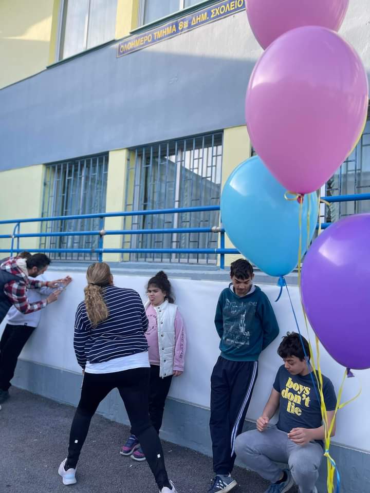 Οι μαθητές των σχολείων πήραν μέρος με προσοχή κι ενδιαφέρον στη βιωματική δράση για τη φιλία και έφτιαξαν την ομπρέλα της φιλίας όπως και το σεντόνι της φιλίας, ώστε οι ωφελούμενοι του συλλόγου μας να το ολοκληρώσουν με τις δικές τους ζωγραφιές.