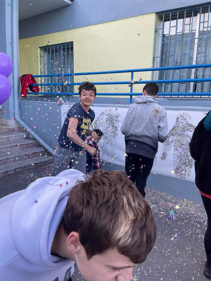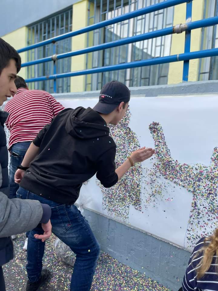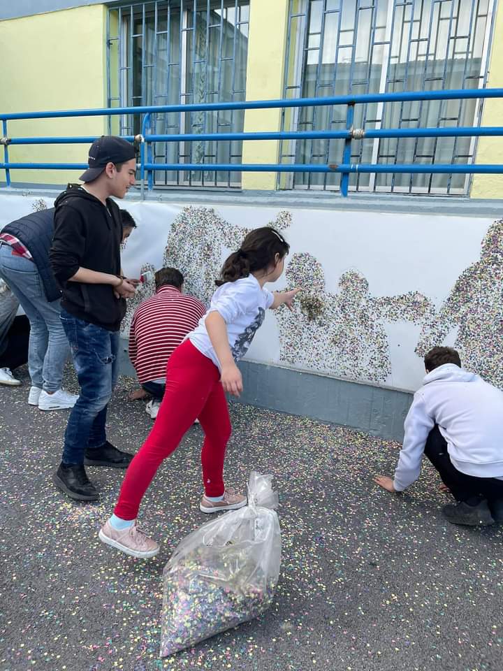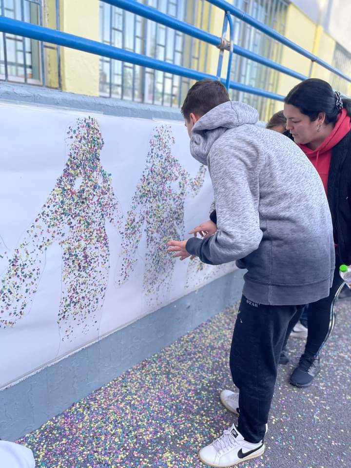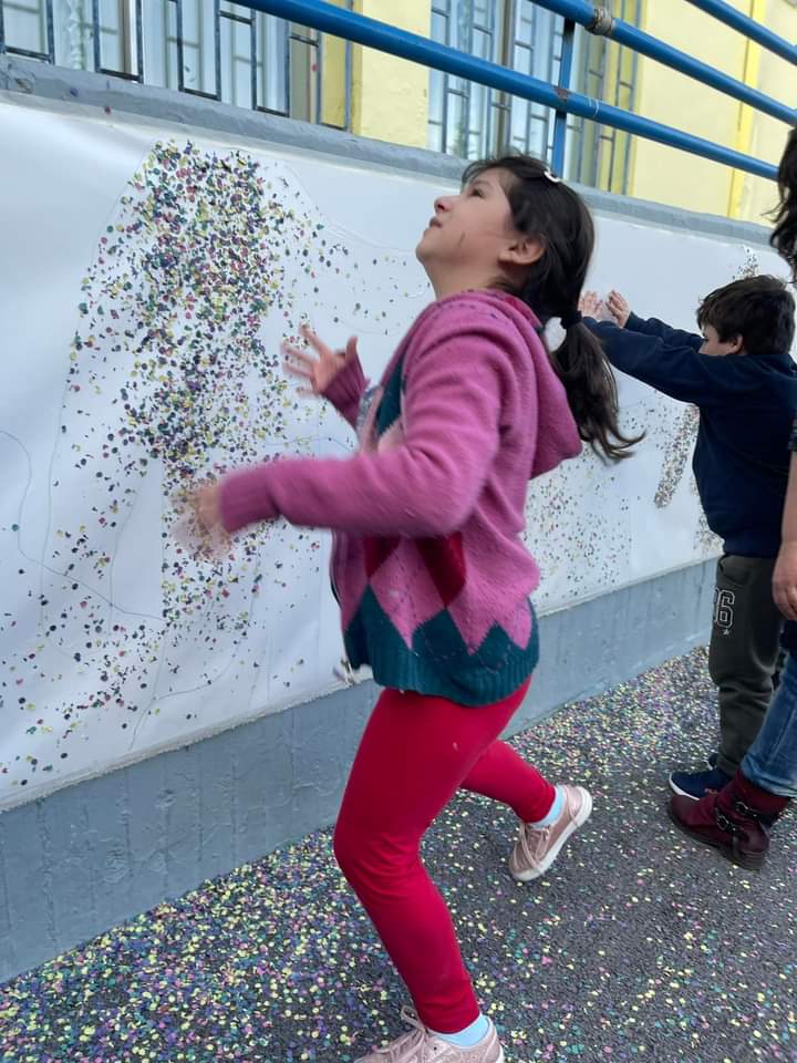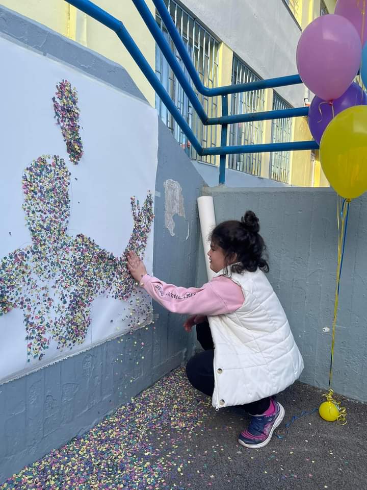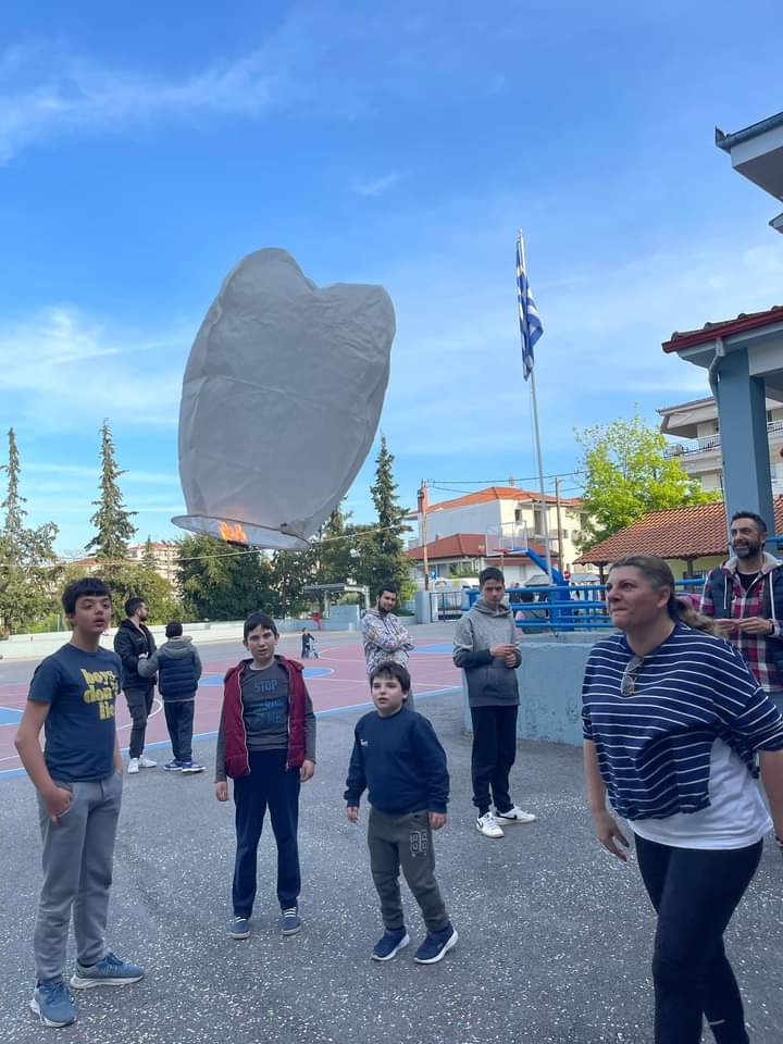 Αφού σχεδίασαν τις φιγούρες των παιδιών σε μουσαμά, στη συνέχεια με χαρτοπόλεμο (κομφετί) τα παιδιά δώσανε μορφή! Στο τέλος φαναράκια και χρωματιστά μπαλόνια ταξίδεψαν στον ουρανό μεταφέροντας αγάπη και ελπίδα!