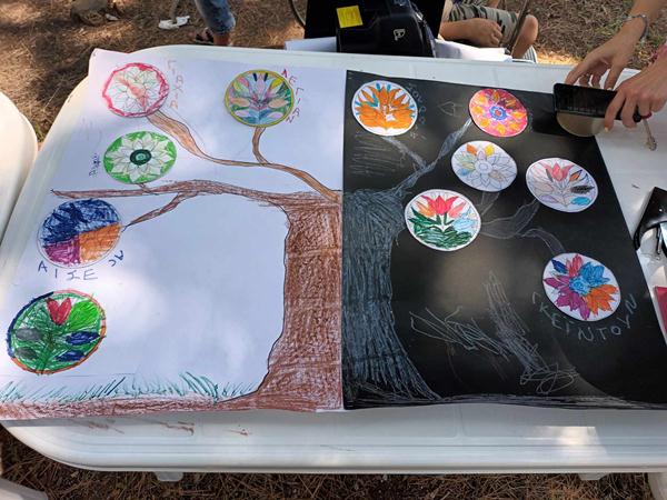 Μία ακόμη δημιουργική δράση που έλαβε χώρα στην εν λόγω εκδήλωση ήταν το «Δέντρο της Ζωής». Την συγκεκριμένη δράση επιμελήθηκε η Κοινωνιολόγος του Κέντρου Κοινότητας, κα Μπαϊρακταρίδου Μελίνα. Η κα Μελίνα εξήγησε στα παιδιά μεγαλύτερης ηλικίας που συμμετείχαν στην δράση το νόημα του «Δέντρου της Ζωής». Οι ρίζες και ο κορμός συμβολίζουν τις βάσεις και τις αξίες που θα παραμείνουν μαζί μας για το υπόλοιπο της ζωής μας. Τα κλαδιά συμβολίζουν τις αποφάσεις και τις επιλογές που κάνουμε σε όλη μας τη ζωή, όλα τα εμπόδια που ξεπερνάμε και τη μάθηση που παίρνουμε από αυτό.Στη συνέχεια τα παιδιά ζωγράφισαν τα μοτίβα που είχε ετοιμάσει η κα Μελίνα και έφτιαξαν ένα πολύχρωμο δέντρο. Φυσικά από την εκδήλωση δεν έλειψε ο χορός και το καραόκε σε όλες τις γλώσσες. Τα παιδιά γνώριζαν αρκετά καλά ελληνικά και έτσι η εκδήλωση κύλισε πολύ όμορφα. Η Δομή γέμισε χαμόγελα και χρώματα.