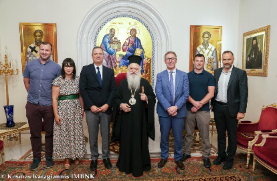 Ο Σεπτός Ποιμενάρχης μας κ. Παντελεήμων καλωσόρισε τους αξιότιμους αντιπροσώπους της εταιρείας: κ. Andy Kinsella, Διευθύνοντα Σύμβουλο της εταιρείας Αιολική Βερμίου Α.Ε, τον κ. Παναγιώτη Λαδακάκο, Διευθύνοντα Σύμβουλο της ΕΝΤΕΚΑ Α.Ε., τον κ. Marc Lamphiere, Διευθυντή σχεδιασμού και κατασκευών, τον κ. Ollie Kelleher, Διευθυντή κατασκευής του έργου, την κα. Ελισσάβετ Κατσίδη, Υπεύθυνη θεμάτων τοπικής κοινωνίας και τον κ. Ανδρέα Βλαμάκη, Υπεύθυνο αδειοδότησης του έργου στην Αποστολική Μητρόπολη της Βεροίας και τους ευχαρίστησε για την δωρεά της εταιρείας τους προς την Ιερά Μητρόπολη με σκοπό την αποπεράτωση των εργασιών του συσσιτίου «Τράπεζα Αγάπης της Ιεράς Μητροπόλεως Βεροίας Ναούσης και Καμπανίας», που έχει τις εγκαταστάσεις του στην πόλη της Νάουσας.