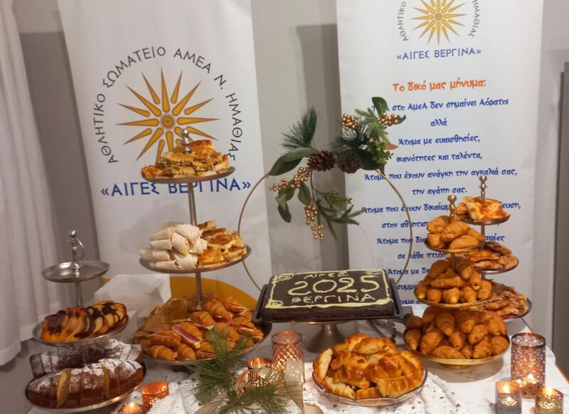 Μέσα σε μια πολύ όμορφη οικογενειακή και φιλική ατμόσφαιρα το ΑΘΛΗΤΙΚΟ ΣΩΜΑΤΕΙΟ ΑΜΕΑ Ν. ΗΜΑΘΙΑΣ ΑΙΓΕΣ ΒΕΡΓΙΝΑ παρουσία των αθλητών/τριών, του Δ.Σ. του σωματείου, του Βουλευτή κ. Απόστολου Βεσυρόπουλου,, εκπροσώπων του Δήμου Βέροιας, της Αντιπεριφέρειας Ημαθίας, φίλων, υποστηρικτών, χορηγών και εθελοντών πραγματοποιήθηκε η καθιερωμένη κοπή της βασιλόπιτας.
