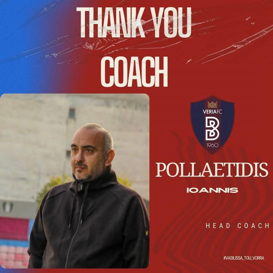 Η Βέροια ανακοίνωσε τη λύση της συνεργασίας της με τον προπονητή Γιάννη Πολλαετίδη.