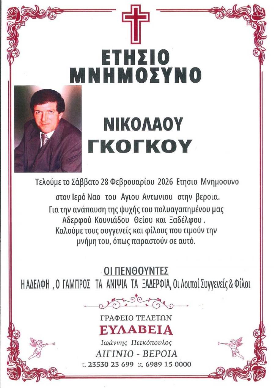 Τα ετήσια μνημόσυνα του Νικολάου και Ιωάννη Γκόγκου στη Βέροια