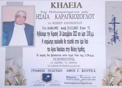 Από το Εργατικό Κέντρο Ημαθίας «Γεώργιος Βουτηράς», ανακοινώθηκαν τα εξής: Με ιδιαίτερη θλίψη και στενοχώρια αποχαιρετούμε τον συναγωνιστή μας, εργάτη του Βαρβαρέσου Μένιο Ρήγα, μέλους της διοίκησης του σωματείου εργαζομένων στο Βαρβαρέσο και πρωτοπόρο αγωνιστή, μπροστάρη σε όλους τους αγώνες…
