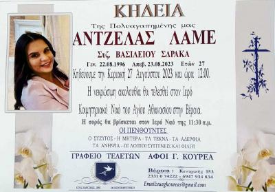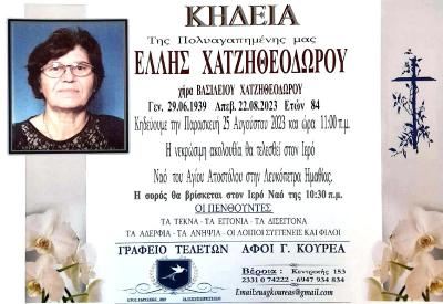 Κηδεύεται αύριο Παρασκευή 09 Φεβρουαρίου 2024 και ώρα 13.30 το μεσημέρι, η Ελένη, Τσιντικίδου, 49 ετών. Η νεκρώσιμη ακολουθία θα τελεσθεί στον Ιερό Ναό Αγίας Παρασκευής  στην Κυψέλη Ημαθίας. Η σορός θα βρίσκεται στον Ιερό Ναό στις 10.30 π.μ.