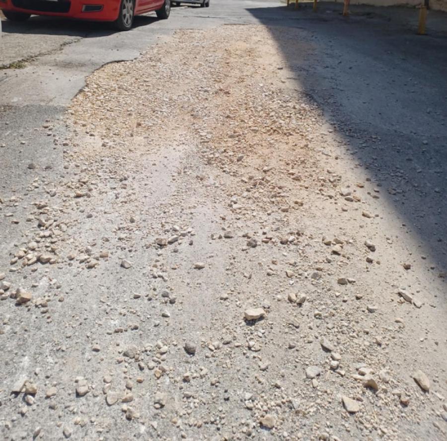 Το σημείο έχει καλυφθεί πρόχειρα με χαλίκι, χωρίς να έχει ολοκληρωθεί η απαιτούμενη ασφαλτόστρωση, με αποτέλεσμα να εγκυμονεί σοβαρούς κινδύνους για την κυκλοφορία τόσο των οχημάτων όσο και των πεζών.
