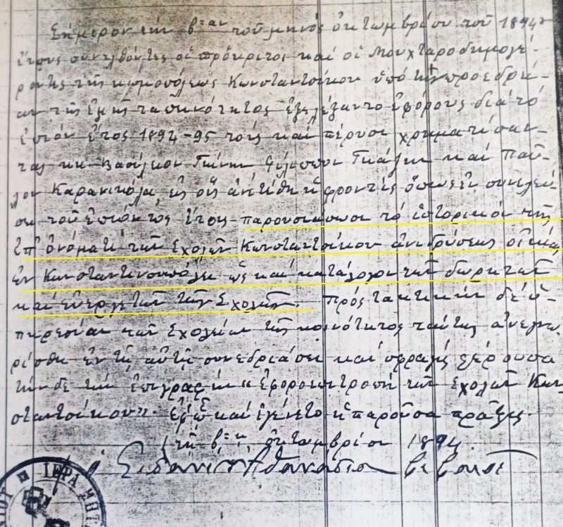 Αξίζει εδώ να προσθέσω πως πολλοί από τους Κωνσταντινουπολίτες παλαιότερων εποχών, αλλά και δικοί μας που πήγαν ως μετανάστες από τα μέσα του 19ου αιώνα, απέκτησαν μεγάλες περιουσίες πολλοί πρόσφεραν, κατά την ευαισθησία τους, την εθνική συνείδηση της εποχής, μεγάλα ποσά ως δωρεές για ιδρύματα ή για σχολεία εντός και εκτός Πόλης. Έτσι χτίστηκαν και λειτούργησαν το Ζωγράφειο το 1893, το περίφημο Γυμνάσιο Τσοτυλίου το 1871 και μετά (από τη Μακεδονική Φιλεκπαιδευτική Αδελφότητα, με έδρα την Κωνσταντινούπολη ως το 1924, στο ΔΣ της οποίας ήταν οι δύο παππούδες μου), πληρώνονταν τα λειτουργικά έξοδα σχολείων, εξασφαλίζονταν η πληρωμή δασκάλων σε πόλεις και χωριά (όπως στο δικό μου στο Βόιο, Κωνστάντσικο τότε, Αυγερινός από το 1928) και χρηματοδοτούνταν πλήθος άλλων δραστηριοτήτων ανθρωπιστικού και εθνικού περιεχομένου. Όλα αυτά, και πολλά άλλα ενδιαφέροντα στοιχεία, που αντανακλούν το πνεύμα αλληλεγγύης και την έμπρακτη αγάπη προς την πατρίδα περιέχονται σε "Κώδικα" και σε "Κατάστοιχον" που υπάρχουν (ένα μικρό δείγμα παρακάτω).