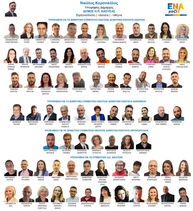 ΥΠΟΨΗΦΙΟΙ ΓΙΑ ΤΟ ΔΗΜΟΤΙΚΟ ΣΥΜΒΟΥΛΙΟ ΝΑΟΥΣΑΣ- ΔΗΜΟΤΙΚΗ ΕΝΟΤΗΤΑ ΝΑΟΥΣΑΣ