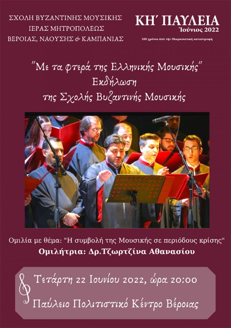 Στην εκδήλωση θα μιλήσει η Δρ. Τζωρτζίνα Αθανασίου με θέμα: «Η συμβολή της μουσικής σε περιόδους κρίσης’.