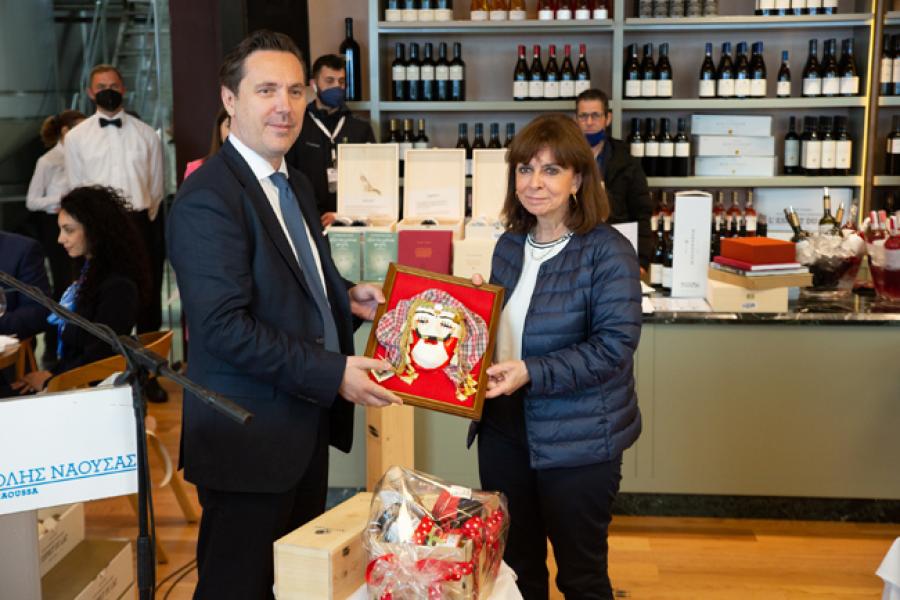 Ο δήμαρχος Νάουσας πρόσφερε στην κ. Σακελλαροπούλου ένα εξαιρετικό, παλαιωμένο κρασί της οικογένειας του Γιάννη Μπουτάρη.